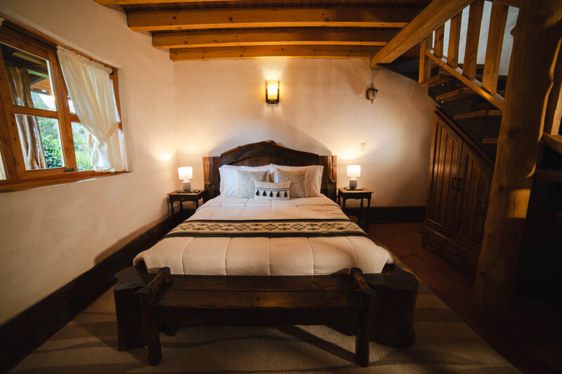Cusha Familiar dentro de un bloque de 4 Cabañas. Vista directa a jardines y áreas verdes. Cuenta con baño y ducha, tiene dos pisos, en el primer piso una cama de dos plazas y media y en el segundo piso 2 camas de una plaza y media, chimenea, estación de té. Dispone de wifi en áreas comunes. Incluye desayuno, uso del área de SPA (piscina e hidromasajes, baño de cajón o turco). Castillo de conejos. Área de juegos de mesa, sala launch y biblioteca. Acceso directo a la Laguna de Busa y parqueadero privado. Tarifa por 2 adultos y 2 niños hasta los 12 años.