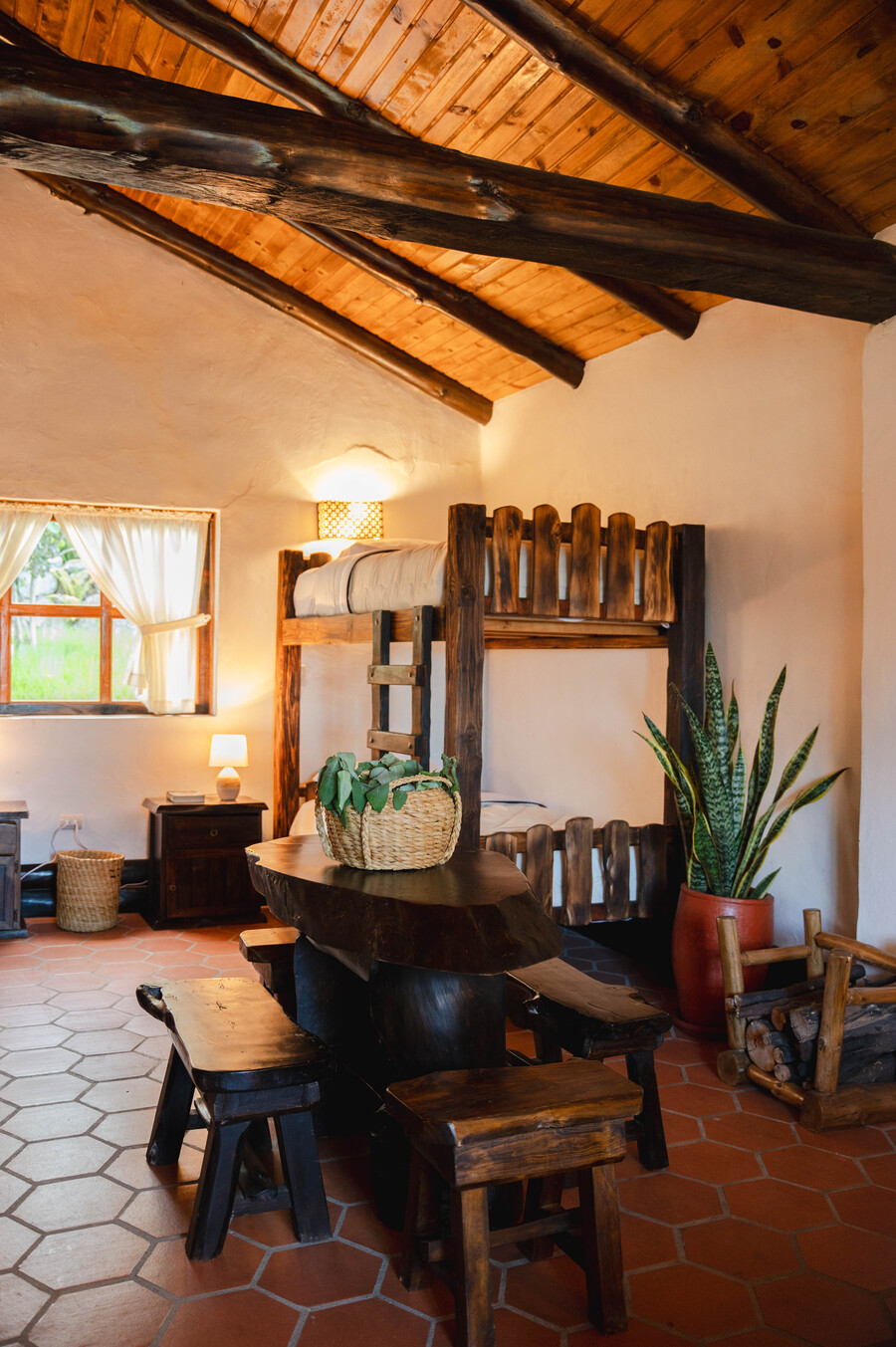 Nuestras cabañas construidas con materiales propios de la localidad que conectan con la cultura y tradición. Diseñadas con un ambiente acogedor y confortable para el disfrute y relajación de nuestros invitados.